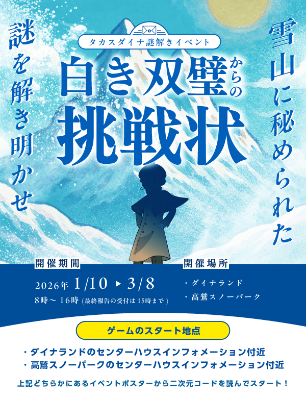 1/10(土)より、タカスダイナ謎解きイベント『白き双璧からの挑戦状』開催!